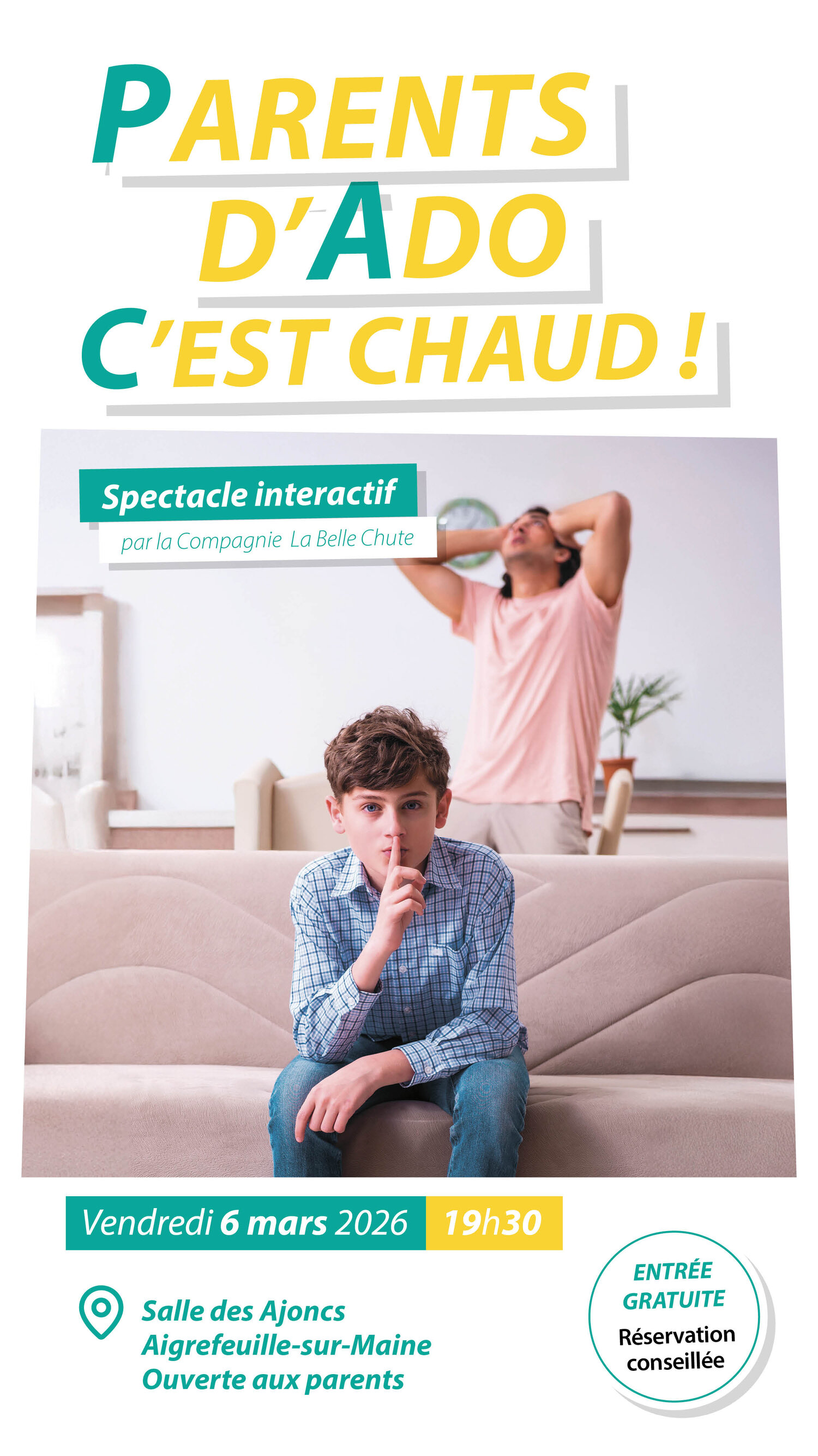 Entrée gratuite, réservation possible en ligne via le lien : https://mesdemarches.clissonsevremaine.fr/inscription-a-la-soiree-parents-d-ados-c-est-chaud-vendredi-6-mars-2026-a-19h30-a-la-salle-de-ajoncs-complexe-sportif-des-richardieres-a-aigrefeuille-sur-maine/