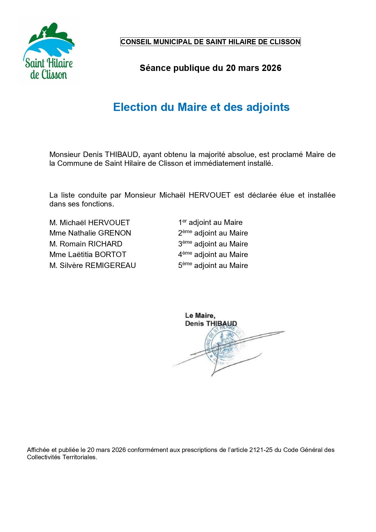 Élection du maire et des adjoints