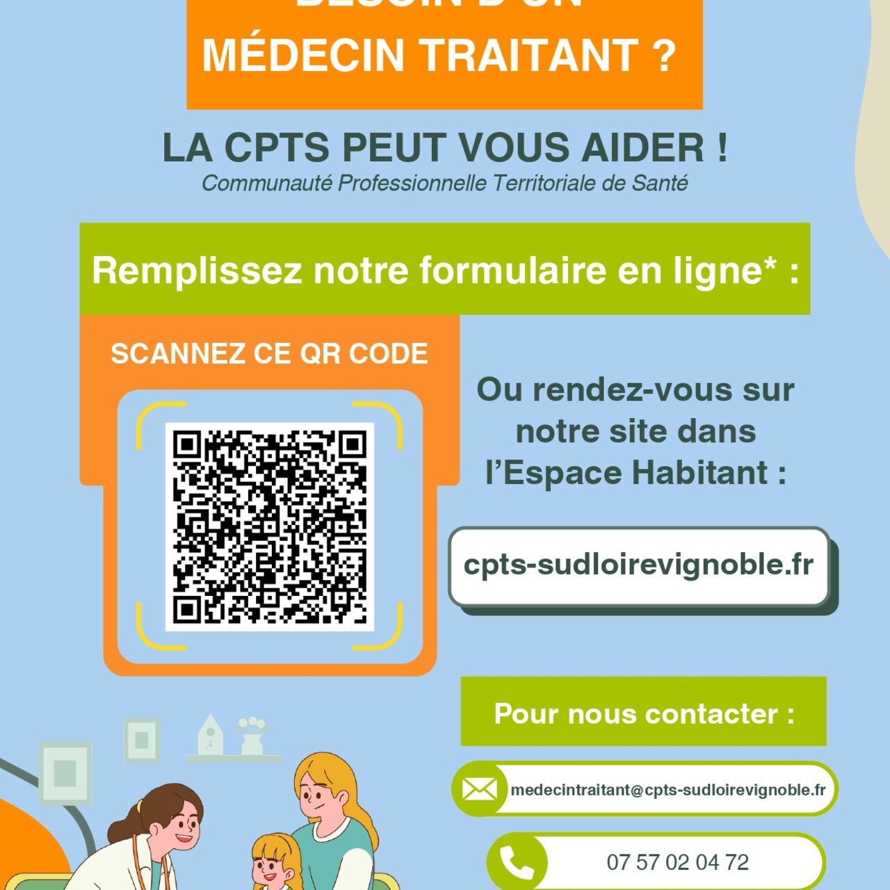 Pour toute question - tél : 07 57 02 04 72 ou mail : medecintraitant@cpts-sudloirevignoble.fr